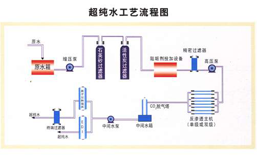 超纯水,是一般工艺很难达到的程度,采用预处理、反渗透技术、超纯化处理以及后级处理四大步骤,多级过滤、高性能离子交换单元、超滤过滤器、紫外灯、除TOC装置等多种处理方法,电阻率方可达18.25MΩ*cm