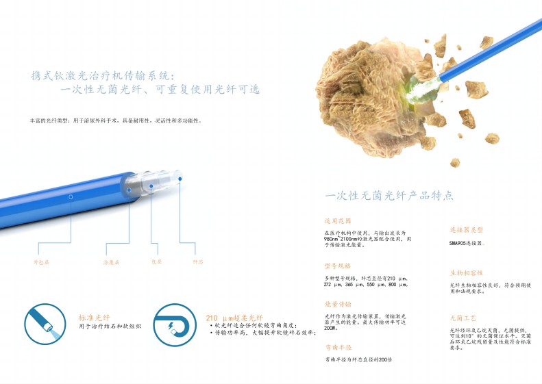 丰富的光纤类型:用于泌尿外科手术,具备耐用性,灵活性和多功能性。